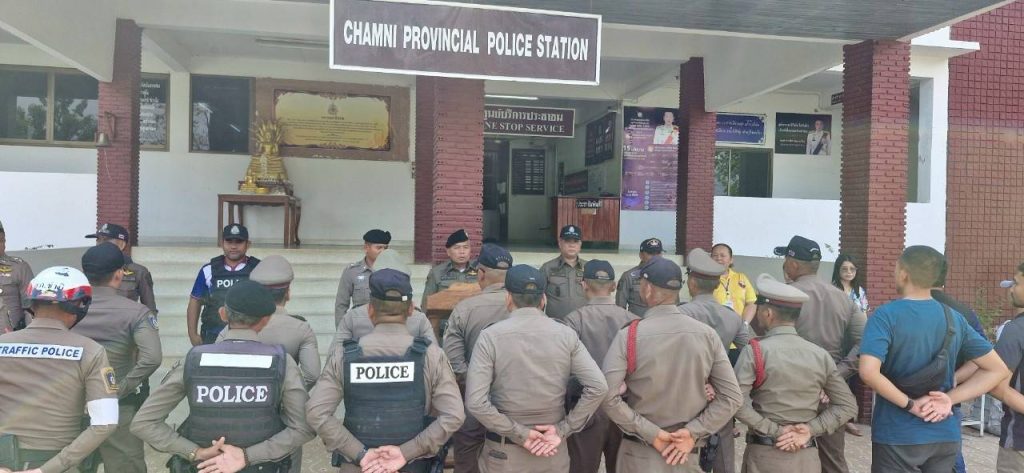 วันที่ 10 เมษายน 2568 พ.ต.อ.ไกรยสิทธิ์ ออมไธสง ผกก.สภ.ชำนิ ปล่อยแถวระดมกวาดล้างอาชญากรรมรักษาความสงบเรียบร้อยและอำนวยความสะดวกด้านการจราจรในช่วงเทศกาลสงกรานต์ พ.ศ.2568 ชี้แจงข้อราชการ พร้อมทั้งกำชับการปฏิบัติตามโยบายการต่อต้านการรับสินบน (Anti- Bribery Policy) ไปปฏิบัติ และประกาศ ไม่รับของขวัญและของกำนัลทุกชนิด (No Gift Policy) จากการปฏิบัติหน้าที่ โดยให้ปฏิบัติโดยเคร่งครัด