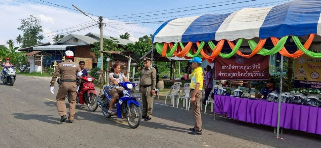 พ.ต.อ. ไกรสิทธิ์ ออมไธสง ผกก.สภ.ชำนิ,พ.ต.ท.สุขุม บัวเรียน สวป.สภ.ชำนิ ,สายตรวจจราจร พร้อมด้วยข้าราชการตำรวจจิตอาสาพระราชทานในสังกัด ร่วมกิจกรรมจิตอาสาจราจร รณรงค์ขับขี่ปลอดภัย สวมหมวกนิรภัยเพื่อลดอุบัติเหตุทางถนน ในช่วงเทศกาลสงกรานต์ พ.ศ. 2568 สภ.ชำนิ จว.บุรีรัมย์ โดยได้ตั้งจุดตรวจเรียกตรวจผู้ขับขี่ที่ไม่สวมหมวกนิรภัยมาดำเนินการดังนี้