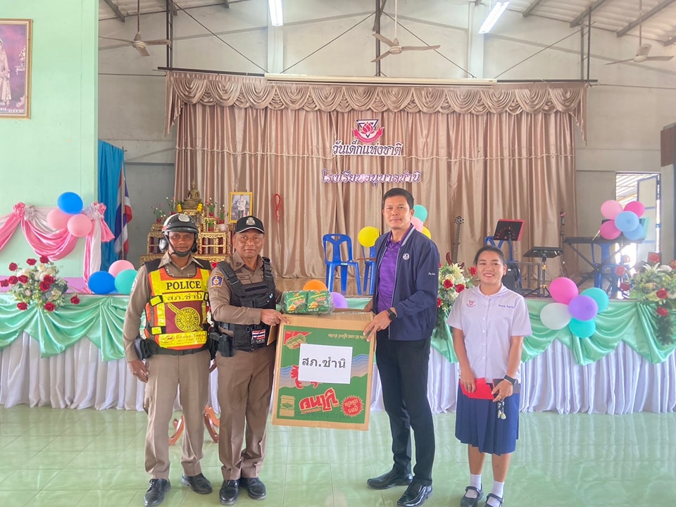 พ.ต.อ.จุลทิตย์ กิตติรงค์ ผกก.สภ.ชำนิ มอบหมายให้ พ.ต.ท.นครินทร์ ฮกลิ้มรอง ผกก.ป.ฯ , พ.ต.ท.สุขุม บัวเรียน สวป.ฯ และชุดจิตอาสา ชมส. ร่วมกิจกรรมวันเด็กแห่งชาติ มอบทุนการศึกษาและ มอบของขวัญให้กับเด็กนักเรียนโรงเรียนในเขตพื้นที่อำเภอชำนิ